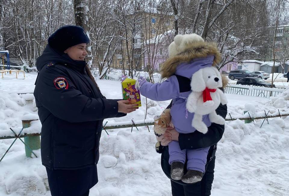 В Лысьве стражи правопорядка в рамках реализации акции «Полицейский Дед Мороз» поздравляют детей с новогодними праздниками